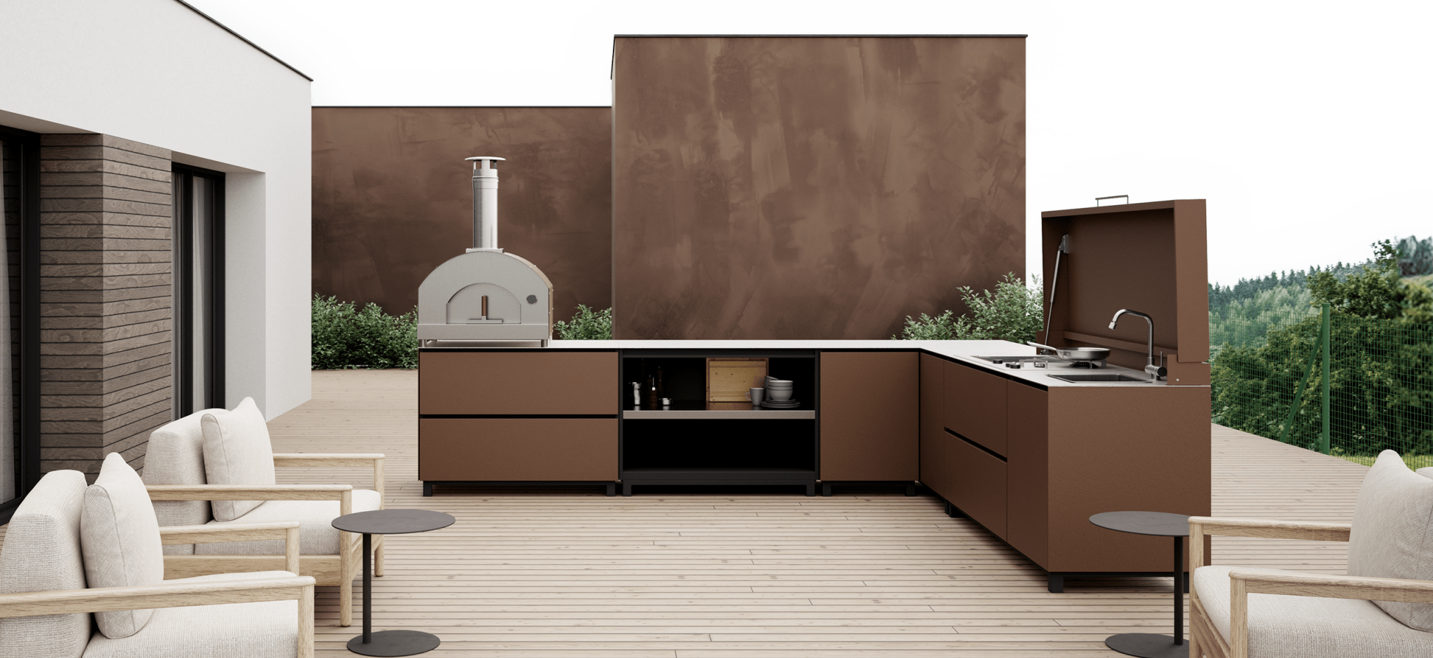 Verwandeln Sie Ihren Garten oder Ihre Terrasse in einen eleganten Raum, in dem Sie zu jeder Jahreszeit kochen und Freunde und Familie bewirten können.